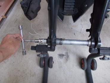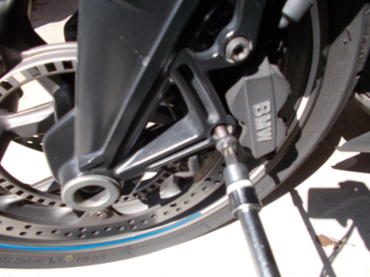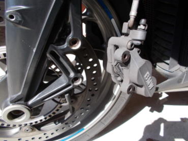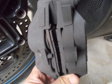 | さて、フロントに取りかかります。先ずは、左右のキャリパーから取り外し。 | ||