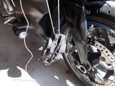 | 邪魔にならないように、紐で、キャリパーを吊しておきます。 | ||