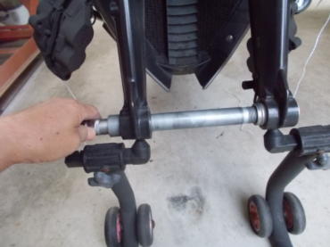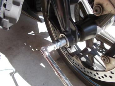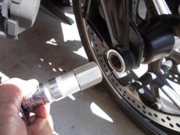 | アクスルシャフトを、一旦、途中まで緩めます。 | ||