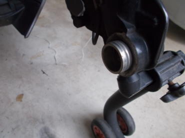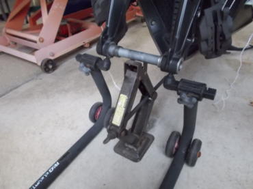 | このままだと、チョット怖いので、アクスルシャフトを戻して、下から、パンタグラフジャッキをそわせ、 安全弁を、一つ追加しておきます。 |