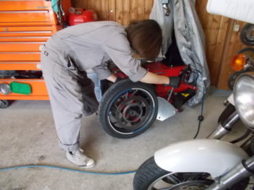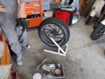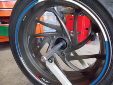 | 先ずは、リアタイヤを外します。こちらは、簡単に外れます。 | ||