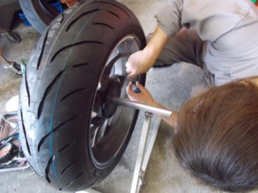 よくよく後輪を見てみたら、結構減っていたのに気づきまして、タイヤ交換を行いました。