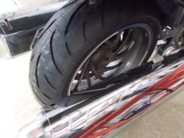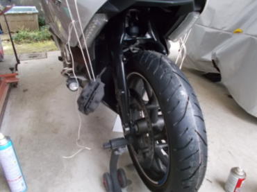 | リアも確認。 正直、長くは無いですね。タイヤもそうですが、このバイクは消耗品が減るのが早い | ||