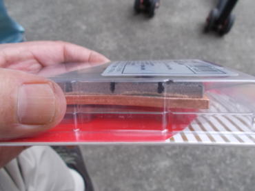 | ディスクパッドの減り具合も気になりまして、新品を出してきて、見比べてみましたが、再利用に決めました | ||